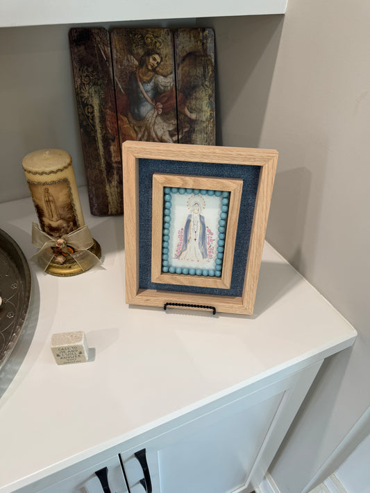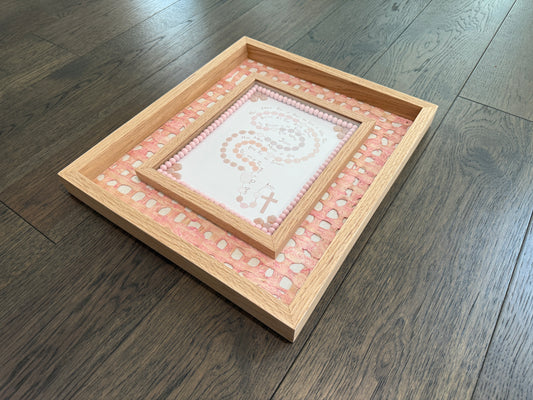 Looking for something on the smaller side to hang or adorn a tabletop, check out our glass-encased Small Frames. Sizes vary based on the embellished print encased in each. Our Small Frames are currently available in 11" x 9", 12" x 10", or 17" x 15". More coming soon!